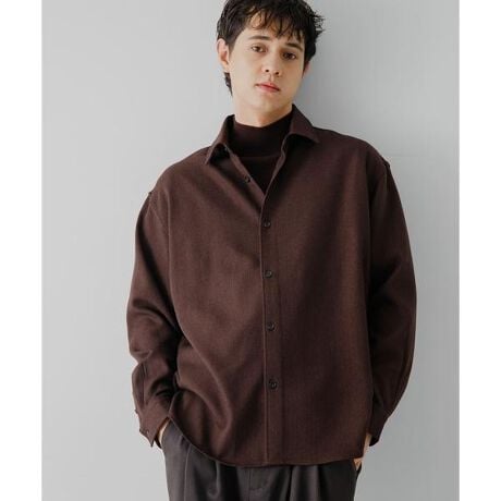 さりげない表情のヘリンボーン織のレギュラーカラーシャツ