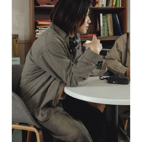 〇同系色のマイクロチェックで古着のような雰囲気のある仕上がり