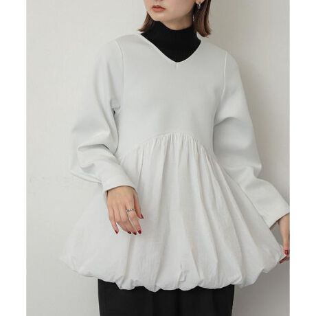 シルエットが可愛いバルーンデザインは腰回りもカバーしつつウエストは綺麗に見えるスタイルアップアイテム。Iラインスカートやタックパンツ等スッキリシルエットのアイテムとの合わせがおすすめです。