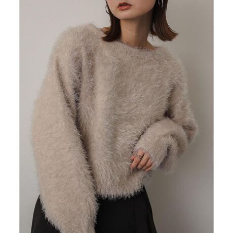 冬定番のシャギーニットは何にでも合わせられるシンプルなデザイン。ボトムを選ばず合わせていただけますがクロップド丈なのでウエストが綺麗に見えるボトムやワンピースに被りのスタイリングがおすすめです、