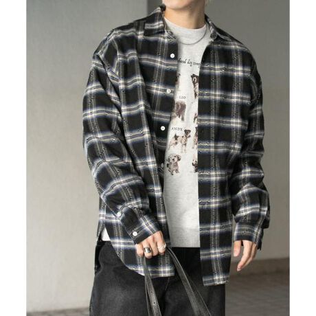 ダメージチェックルーズシャツ