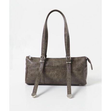 ヴィンテージ感あるフェイクレザー生地をあしらったボストンバッグ。