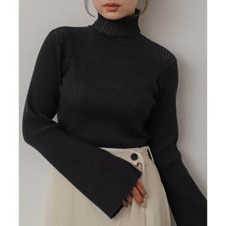 フレアスリーブリブタートルセーター