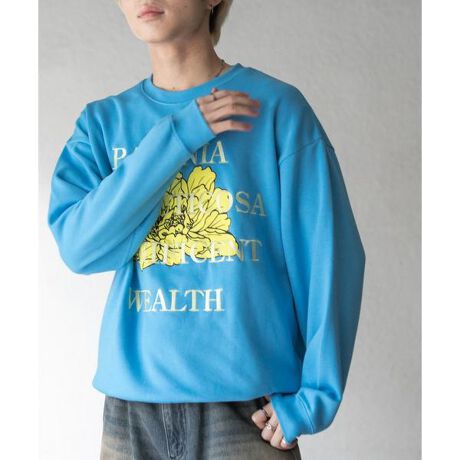 冬場も暖かく着られる裏起毛生地を使用大胆にあしらったボタニカルプリント×刺繍がインパクトのある一着