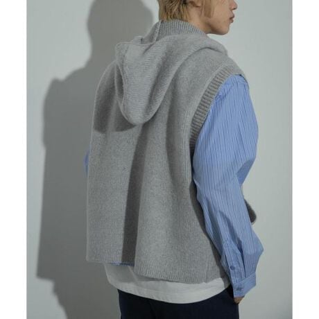 モヘアライクなシャギーでふんわりと暖かいフーディニットベスト。