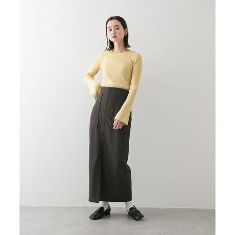 生地は柔らかくて厚さもちょうど良く、秋から冬にかけて活躍しそう。スリットがちょっと深いですが、その分足さばきが良いです。ただ、長く使っているとスリットのところから広がってシルエットが崩れそうな感じは少しありますね。