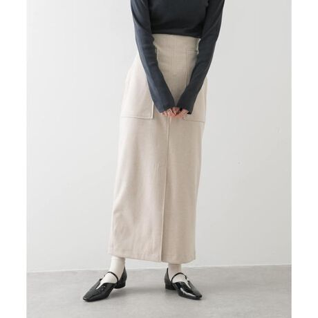 生地は柔らかくて厚さもちょうど良く、秋から冬にかけて活躍しそう。スリットがちょっと深いですが、その分足さばきが良いです。ただ、長く使っているとスリットのところから広がってシルエットが崩れそうな感じは少しありますね。
