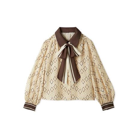毎年人気のボウタイブラウスが今年も登場。今季はヴィンテージ感漂う幾何柄と「LILY BROWN」オリジナルのモノグラム柄の2タイプをご用意しました。首元を華やかに彩るボウタイデザインは、きちんと感がありながらもほどよく抜け感を演出。バイカラーとラインでアクセントを効かせ、クラシカルなムードにまとめました。女性らしいスカートはもちろん、デニムなどカジュアルなアイテムとも好相性。同シリーズのプリーツスカート(品番LWFS254080)とのセットアップスタイルもおすすめです。