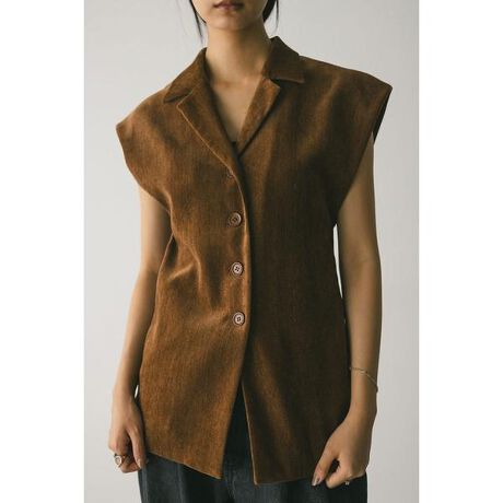 モデル身長172cm(FREEサイズ着用)程よくハリがありながらもしなやかな風合いがポイントのベロア素材を使用したベスト。ヒップをカバーしてくれるロング丈とバランスのとりやすいボタン位置、肩からウエストにつなげたタックがデザインポイント。美しいシルエットでスタイルアップに導きます。インナー次第でロングシーズン着用頂けます。500IAS31-1661(ベロアミニスカートパンツ)とセットアップ着用可能。透け感なし、ストレッチなし。【お手入れ方法】手洗い可