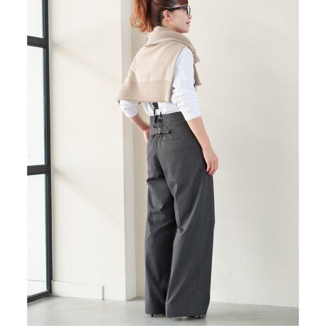 トラッドな雰囲気が魅力のサスペンダー付きワイドストレートパンツ。