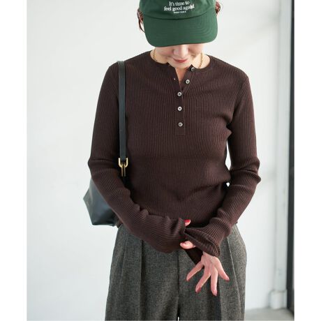 しなやかな肌触り。大人の女性にぴったりの上品ヘンリーネックニット。