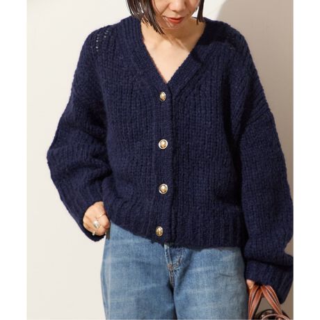 モヘヤ混の軽い素材でざっくり編み込んだ軽やかさが特徴のニットカーディガン。