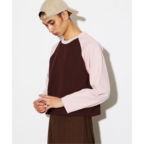 カラーブロック ラグランスリーブ ショート丈 ロンT / 短丈