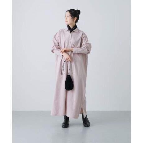 デイリーからお出かけまで幅広い着こなしを楽しめるシャツワンピース。ややコンパクトな襟・プルオーバー仕様・くるみ釦がポイントに。裾はストレートのラインで抜け感をもたらすスリットが入っています。生地はハリを残しつつも柔らかな肌当たりが特徴のコットンシルクを使用。奥行きをもたらす細やかなシワ感と素朴な風合いが、シンプルながらも存在感のある着こなしを後押し。パンツとのレイヤードスタイルにも重宝します。
