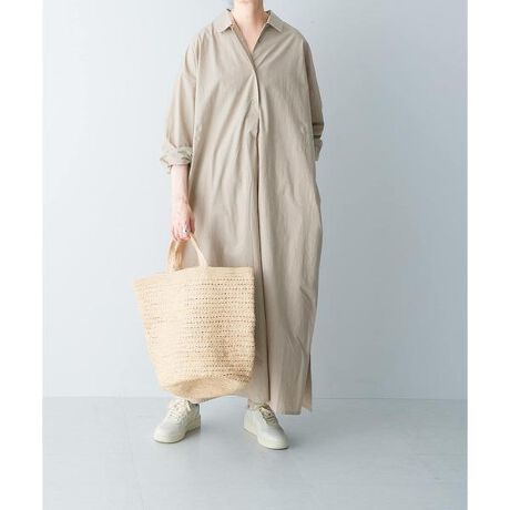 デイリーからお出かけまで幅広い着こなしを楽しめるシャツワンピース。ややコンパクトな襟・プルオーバー仕様・くるみ釦がポイントに。裾はストレートのラインで抜け感をもたらすスリットが入っています。生地はハリを残しつつも柔らかな肌当たりが特徴のコットンシルクを使用。奥行きをもたらす細やかなシワ感と素朴な風合いが、シンプルながらも存在感のある着こなしを後押し。パンツとのレイヤードスタイルにも重宝します。