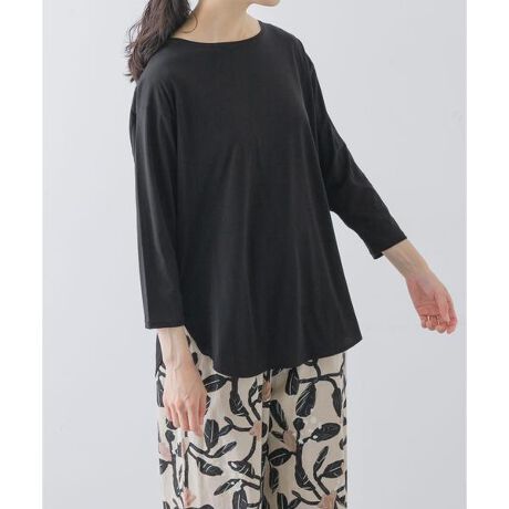 これからのシーズンに着やすい7分袖でご用意しました。細番手のコットンをハイゲージに優しく編み立てた生地を使用しています。大人好みなシアー具合も特徴。程よくゆとりがあり、からだのラインを拾いすぎないのも嬉しいです。裾はラウンドになっていてさり気ないアクセントに。タックイン/アウトどちらのスタイリングにも映えます。ごわつかないので、ベストや羽織りものとのレイヤードにも活躍。1枚あると日々の着こなしに何かと重宝します。
