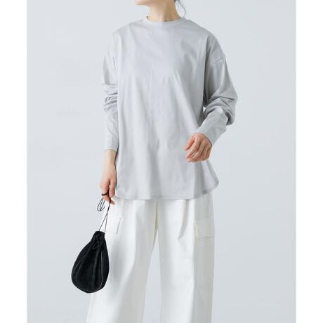 1枚持っていると日々のコーディネートに頼もしいトップス。着こなしのメインとしてはもちろん、スウェットやベストと重ねた時に、襟ぐりや裾がちょうど良くのぞくバランス感にこだわりました。コンパクトな首まわりや、シルエットを拾いにくい程よいゆとり、どこか品のある素材感など大人好みな仕立てになっています。ボトムはスカート・パンツ問わず好相性でサロペットに合わせるのもおすすめ。ジャケットやカーディガンのインナーにも重宝し、様々な場面で大活躍のアイテムです。