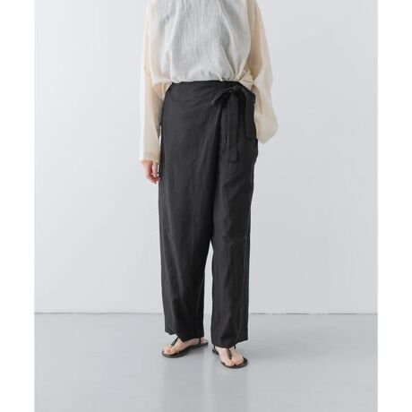 フロント部分がラップ仕様になった旬なデザインのアイテム。やや太めのリボンが上品な雰囲気です。コンパクトなトップスと合わせたり、タックインするスタイリングもおすすめ。大人好みなPURPLEのカラーが魅力的です。裏地は無く軽やかな着心地に仕上げました。リラックスしたムードが大人コーデに好相性。様々な着こなしをお楽しみください。