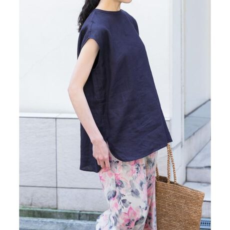 肩にかかるフレンチスリーブは程よく二の腕をカバーし、涼しい着心地を叶えます。シンプルですが首元が詰まった上品なデザインと後ろのタックがポイント◎パンツはもちろんサロペットにも相性が良く、タックインしてスカートにも合わせていただけます。生地はハリのあるしなやかな素材感のハードマンズリネンを使用。フランスのノルマンディ地方で収穫されたリネンの原料を伝統ある紡績方法で紡ぎ、織りあげています。爽やかなOFF、馴染みのいいLIGHT BLUE、合わせやすいNAVYの3色展開です。