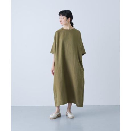 リネンにレーヨンが混紡されたしなやかな素材でワンピースをご用意しました。開きすぎない首元、ワイドながらも大きく見えないパターンを採用。シンプルながらも生地の良さが活かされたデザイン。風通しが良く、夏場でも涼しく着用いただけます。締め付けも無くストレスフリーな着心地です。アクセサリーやバッグなど小物でアクセントを加えて、コーディネートをお楽しみください。同素材のワイドパンツはシリーズアイテムからご覧いただけます。