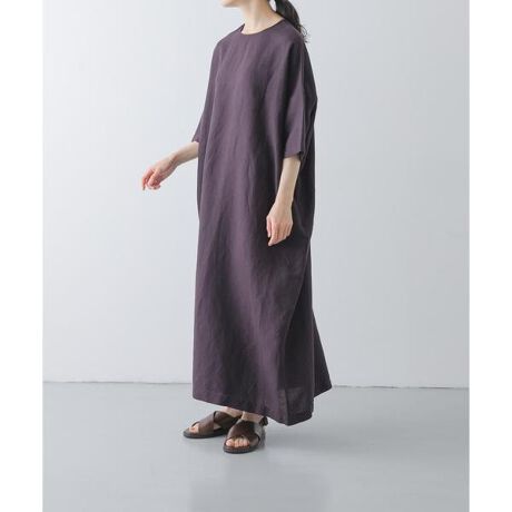 リネンにレーヨンが混紡されたしなやかな素材でワンピースをご用意しました。開きすぎない首元、ワイドながらも大きく見えないパターンを採用。シンプルながらも生地の良さが活かされたデザイン。風通しが良く、夏場でも涼しく着用いただけます。締め付けも無くストレスフリーな着心地です。アクセサリーやバッグなど小物でアクセントを加えて、コーディネートをお楽しみください。同素材のワイドパンツはシリーズアイテムからご覧いただけます。