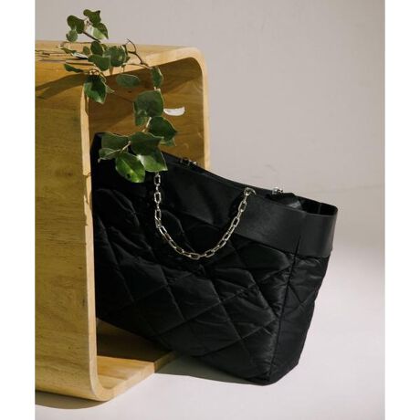 大ぶりなナイロンキルティングトートバッグ持ち手にチェーンが付く2WAY仕様。