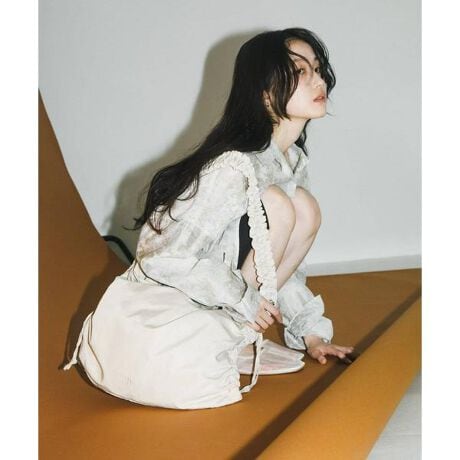 サイド部分のドローコードでギャザーシルエットの調節ができ、気分に合わせて調節可能◎