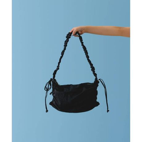 斜め掛けができるショルダーバッグ。サイドにあるドローコードでシルエットの調節が可能で気分に合わせて調節可能。