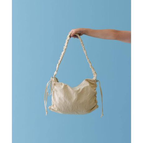 斜め掛けができるショルダーバッグ。サイドにあるドローコードでシルエットの調節が可能で気分に合わせて調節可能。