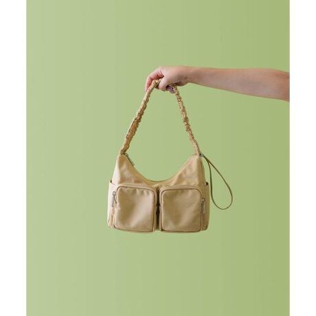 カジュアルな印象のナイロン素材ですが、ギャザーデザインがあることで、モードな印象などのコーディネートにも合うデザイン。