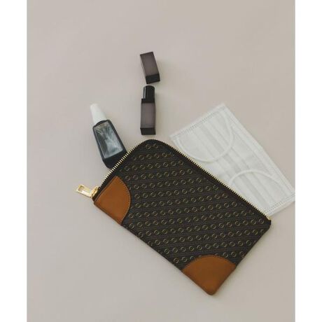 しっかりとしたレザー調に落ち着きのあるモノグラム柄が上質なマルチポーチ。