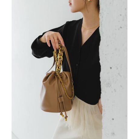 持つだけでアクセントになるデザインバッグ。チェーンが上品な印象にしてくれコーディネートを選ばないデザイン。ハンドル、ショルダーは取り外し可能でお好みに合わせて使い分けいただけます。