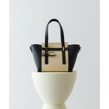 キャンバス風デザインが上品な印象のハンドバッグ。