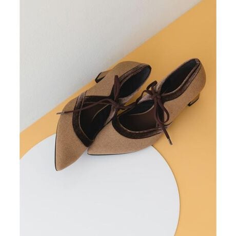 6cmヒールパンプス。太めのヒールを採用しているため、安定感があり見た目以上に歩きやすいのが魅力。シューレース部分はゴム仕様になっており足入れもスムーズで快適。本体とパイピングは異素材を組み合わせることで立体感と高級感のある仕上がりに。つま先はポインテッドトゥで足元をシャープに見せ甲の開きが女性らしさを引き立てます。きれいめながらも程よいデザイン性があり普段使いからフォーマルまで幅広いシーンに対応できる一足です。