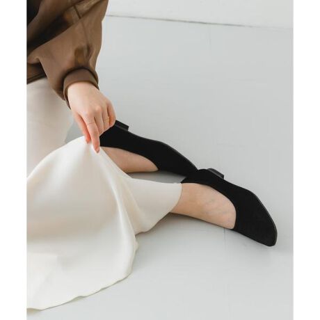 メッシュ生地のベロア素材がポイントのフラットシューズ。