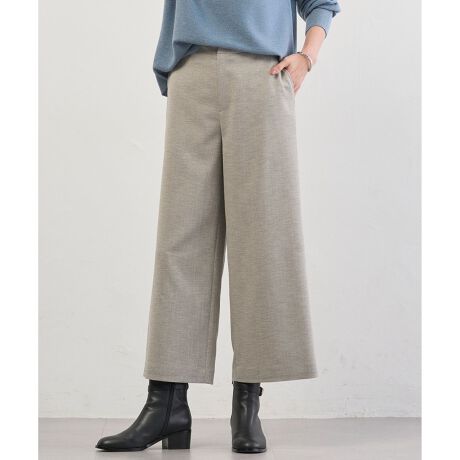 ■デザインマリンパンツのようなフロントのカッティングがアクセントになった、クロップドパンツ。フロントはベルトの切り替えのないすっきりとしたデザインで、腰周りがもたつかず、きれいめな印象に仕上げました。後ウエストはゴム仕様で、穿き着心地が快適なのもポイント。くるぶしが覗く丈感で、パンプスやローファー、秋口からはブーツなどをあわせて、長く活躍するアイテムです。裏地無しです。