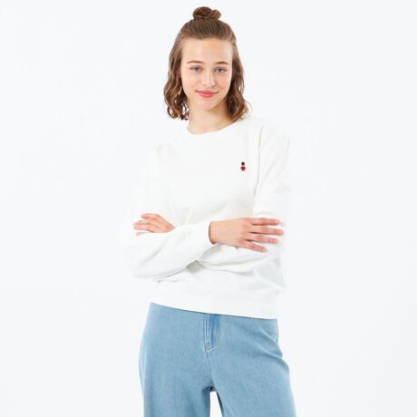 胸元のワッペンがアクセントのスウェットプルオーバー。伸縮性のある裏パイル地に、襟リブ・袖口・裾下にダブルステッチを施した、丈夫さとリラックス感を兼ね備えたデザインです。
