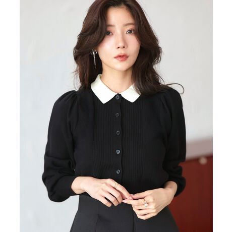 上品な衿とふんわりパフ袖をあしらったカーディガン。