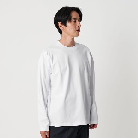 程よいゆとりのある絶妙なシルエットは、1枚でもインナーとしても活躍し、着回し力抜群です。