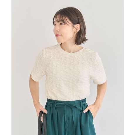 クシュっとした生地が目を惹く五分袖プルオーバー。程よくボディフィットしつつも、伸縮性に優れ快適に着用して頂けます。シンプルなクルーネックボディで着回しやすく、一枚着はもちろんビスチェなどと合わせたレイヤードスタイルにも活躍。表情豊かな素材がスタイリングにアクセントを加えてくれるおすすめのアイテムです。透け感[ややあり]