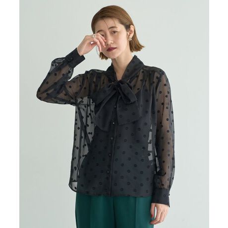 シアーな生地に立体的なドット柄がトレンドライクなジャカードブラウス。