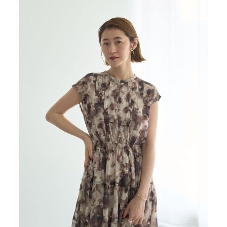ぼかしフラワー柄ワンピース