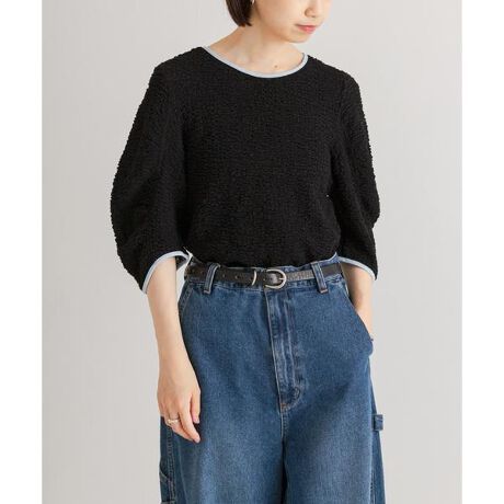 伸縮性のあるカットソー素材をがストレスフリーな着心地で、袖のバナナカーブデザインが、女性らしい丸みのあるシルエットを作り出します。