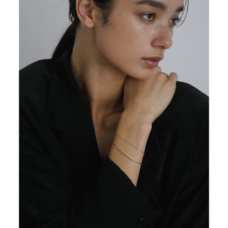 プレーンなブレスレッドとチェーンのコンビが、シンプルながらも手元のアクセントになるアイテム。