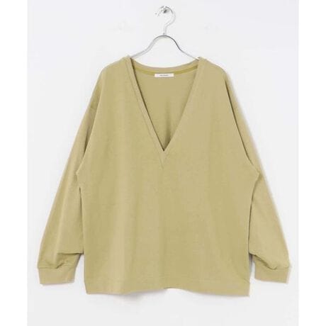 深めのVネックに程よくゆったりとしたサイズ感が、リラクシーな雰囲気のチュニックカットソー。