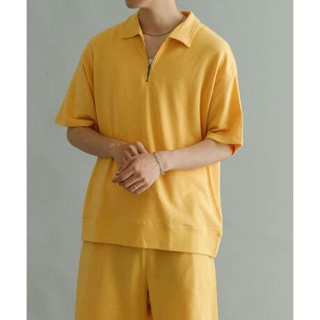 ポロ衿仕様のネックデザインにハーフジップ開閉デティールを加えた旬な一着。