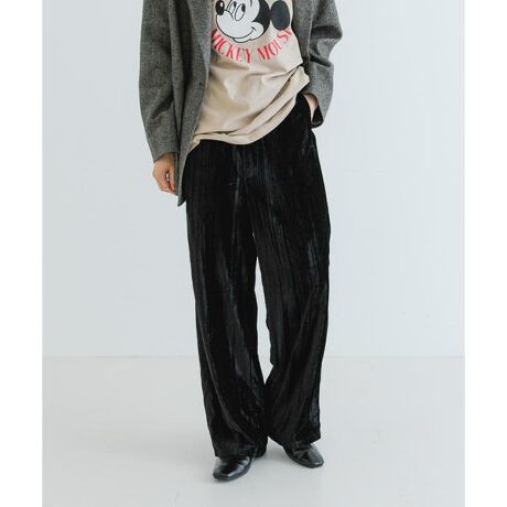角度によって変化する光沢が魅力のクラッシュベロア素材を使用したパンツは、一点投入でシーズンムードを高めてくれるアイテム。