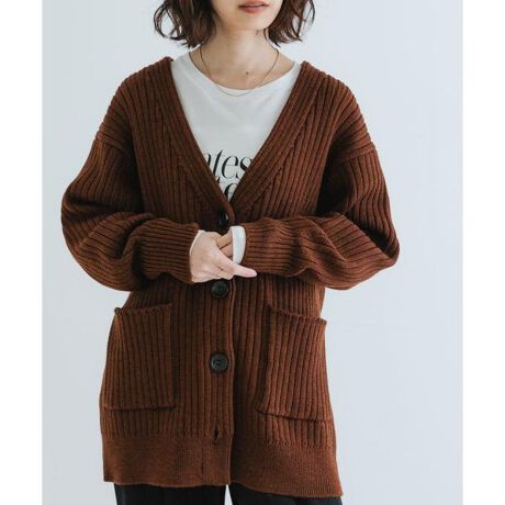 程良く厚みがあるざっくり編みのニットカーディガンは、少し肌寒い季節にアウター代わりとしても使えるアイテム。
