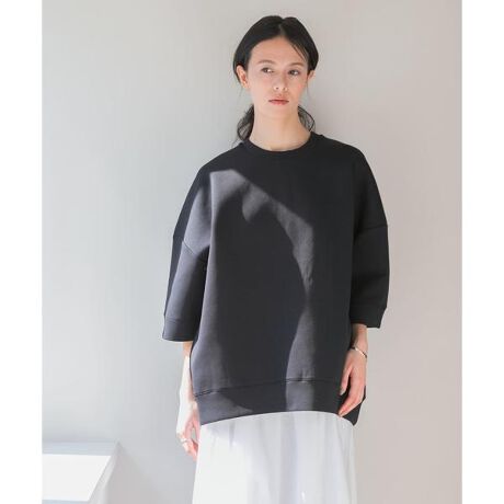詰まり気味のクルーネックと後ろファスナー開きデザインで、スラックスやテーパードパンツと合わせれば、オフィススタイルにも◎