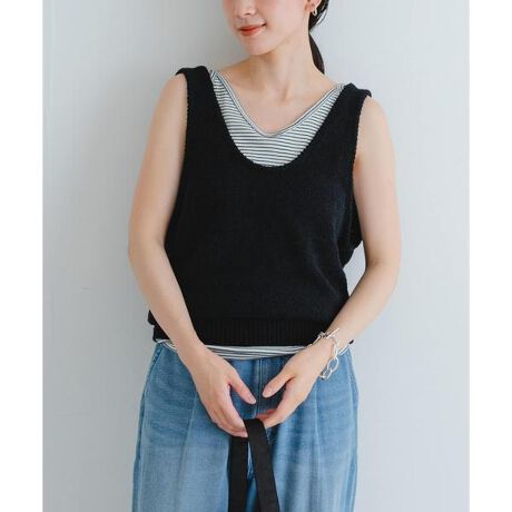 アームホールを広くしているので、ボリュームのあるトップスとも合わせやすく、お手持ちのアイテムに重ねるだけでスタイリングを格上げしてくれるアイテムです。